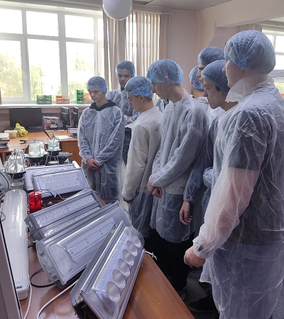После просмотра презентационного фильма о предприятии ребята «путешествовали» по цехам, увидели своими глазами, как собирают светодиодные светильники.