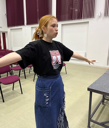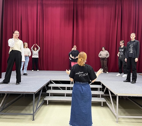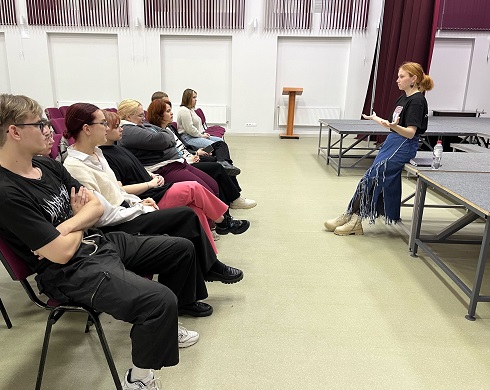 Елизавета рассказала о себе, своей учебе, провела тренинг на партнёрство, тренинг на развитие психофизической памяти, дала рекомендации по улучшению спектаклей, ответила на вопросы наших театралов.