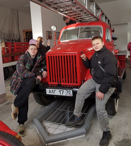 На экскурсии студенты узнали об истории защиты города Томска от пожаров, о героической профессии пожарных, девиз которых – «Все за одного и один за всех». Ознакомились с многочисленными экспонатами музея, экипировке пожарных, примерили “боевку” пожарных, узнали об использовании первичных средствах пожаротушения, сфотографировались с раритетной автомобильной пожарной техникой.