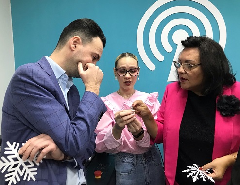 Гостям показали процесс создания рекламной печатной продукции на примере изготовления снежинки от создания макета в программе CorelDRAW до распечатки и резки готового изделия на плоттере.
