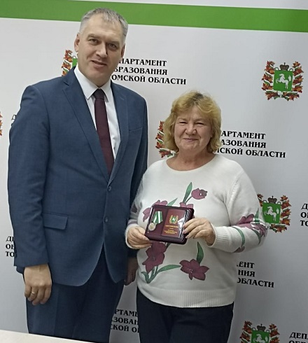Награждение проводили начальник Департамента образования Ю.В. Калинюк и председатель президиума Ассоциации образовательных учреждений «Совет директоров профессиональных образовательных организаций Томской области» Н.П. Горюнов и Г.Н. Светлова-Ильина, заместитель председателя городского совета ветеранов, провели награждение ветеранов и ветеранских организаций.