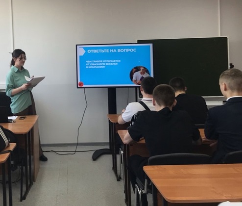 Сначала вместе с ребятами она обсудила причины, виды и последствия буллинга. Затем ребята, разбившись на группы, составляли список качеств уверенного человек, устойчивого к травле человека, и неуверенного человек, подвергаемого травле человека.