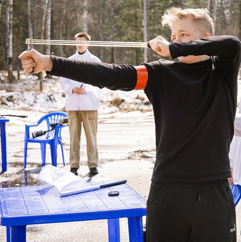 Участники показали свои навыки в стрельбе из лука, пейнтбольного маркера, воздушной винтовки и рогатки!